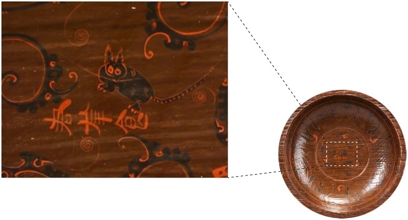 马王堆汉墓出土的“君幸食”猫纹漆食盘 受访者 供图